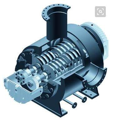 雙螺桿泵:雙螺桿泵是外嚙合的螺桿泵,它利用相互嚙合,互不接觸的兩根螺桿來抽送液體。作為一種雙吸式非密閉的雙螺桿泵,一端伸出泵外的主動螺桿由原動機驅動,主動螺桿與從動螺桿具有不同旋向的螺紋,螺桿與泵體緊密貼合,從動螺桿是通過同步齒輪由主動螺桿帶動的。泵內吸入室應與排出室嚴密地隔開,因此,泵體與螺桿外圓表面及螺桿與螺桿間隙應盡可能小些,同時螺桿與泵體、螺桿與螺桿間又相互形成密封腔,保證密閉,否則就可能有液體從間隙中倒流回去。